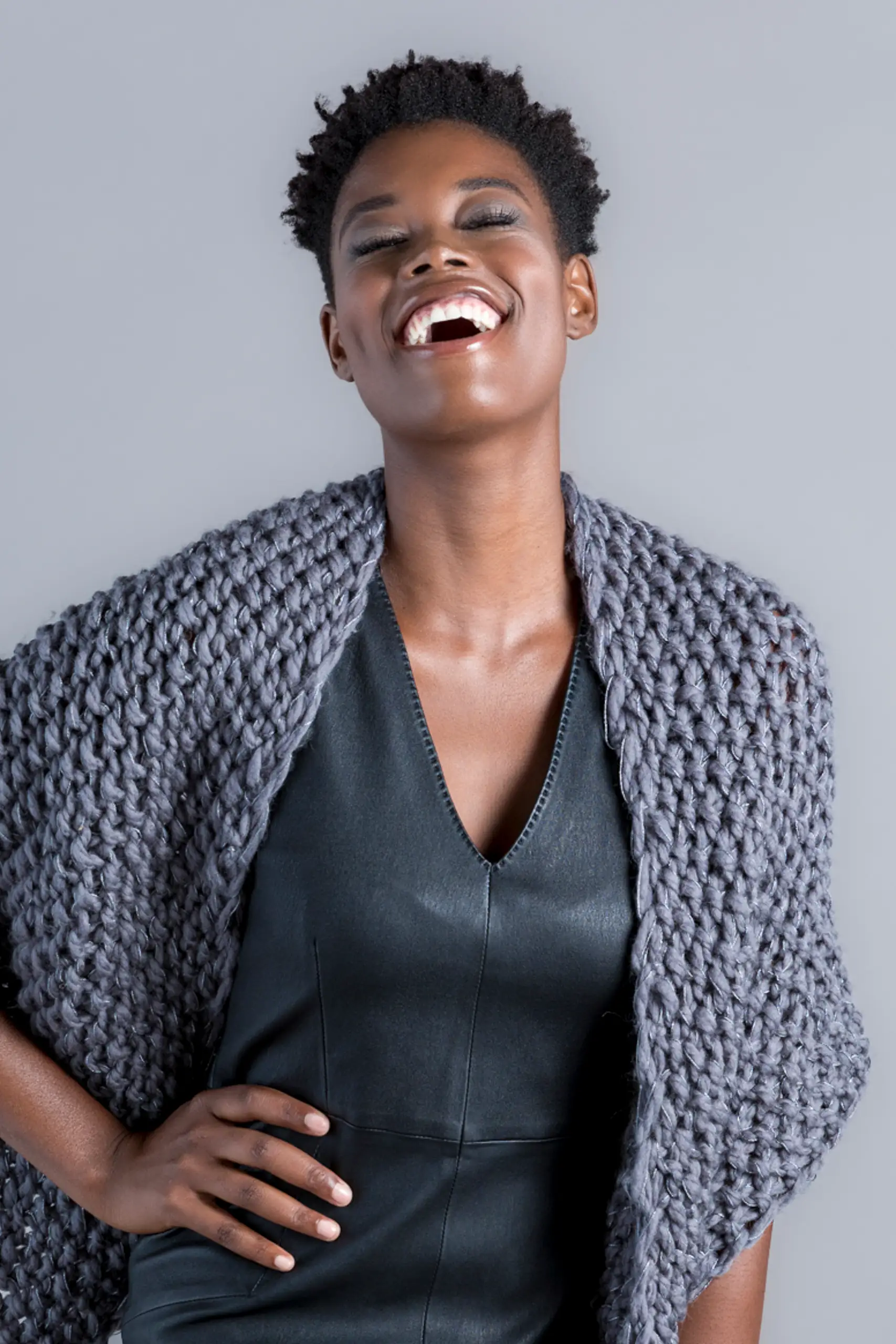 Handgestrickter chunky Strick-Stola, großes Schultertuch aus reiner Wolle gepaart mit dezenten Pailletten.