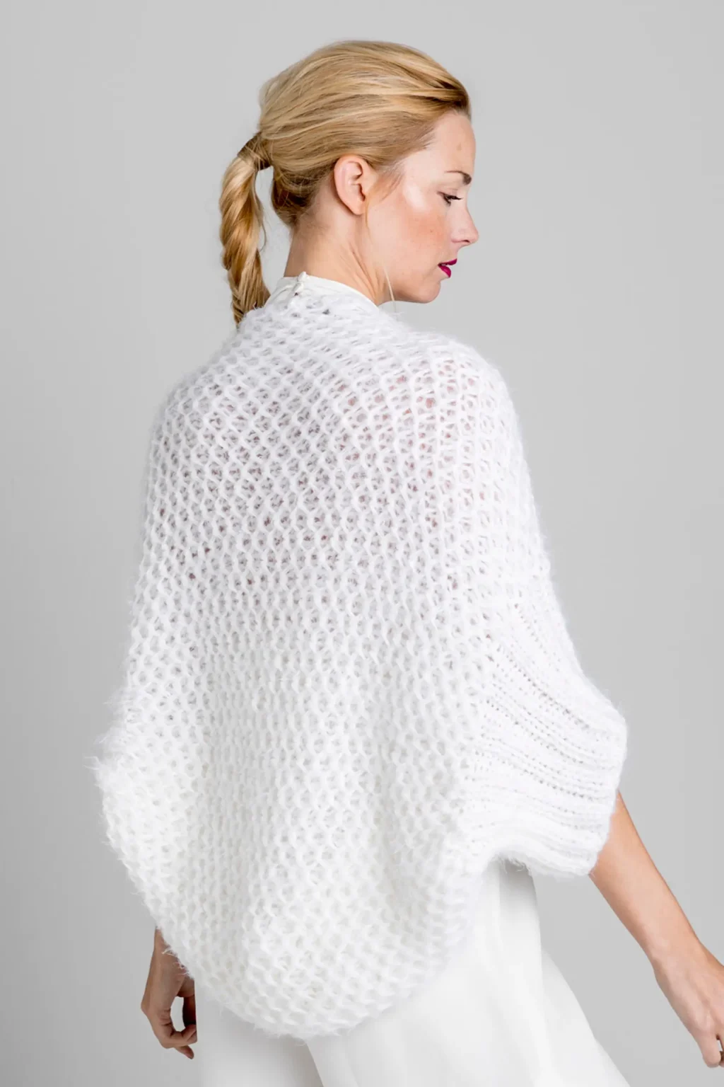 Kuschelige, handgestrickte Kinder-Bolerojacke im Perlmuster.
