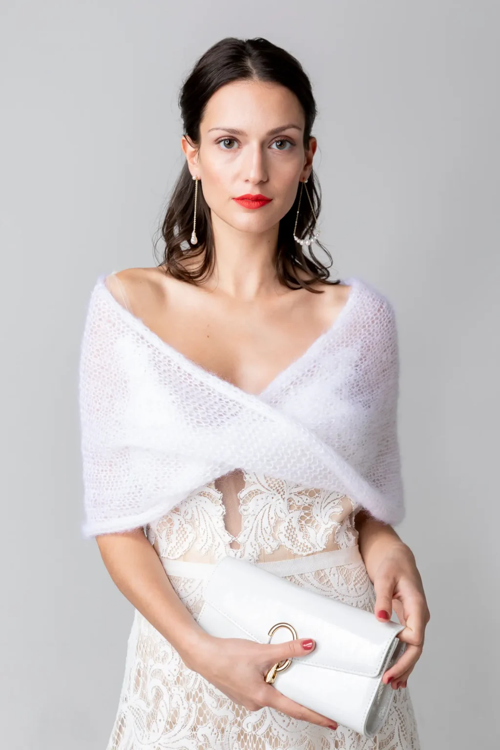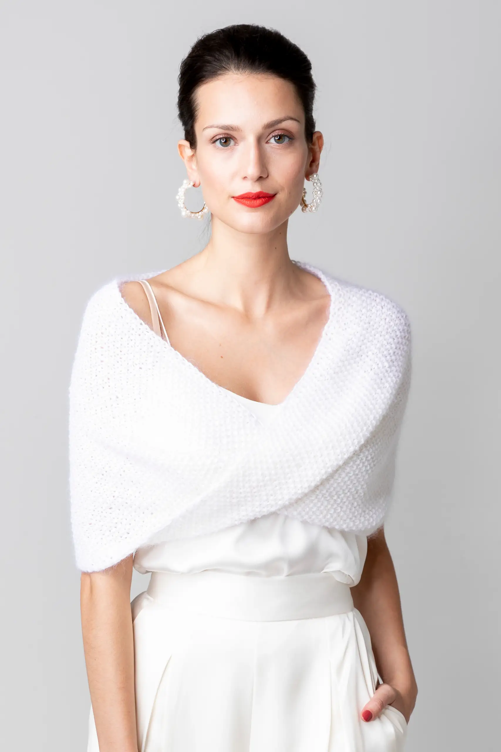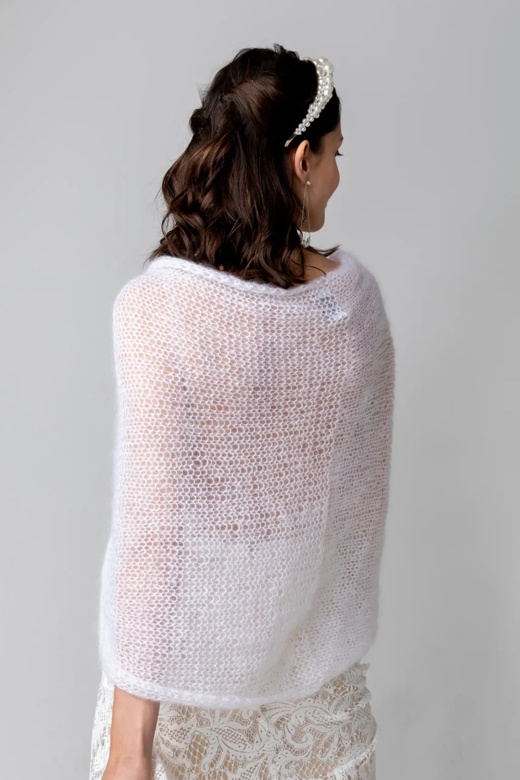 Eleganter, handgestrickter Schulterwrap in feinem Perlmuster aus exklusivem Merino-Mohair-Seide-Garn mit Drehung. Elegant zu kombinieren.