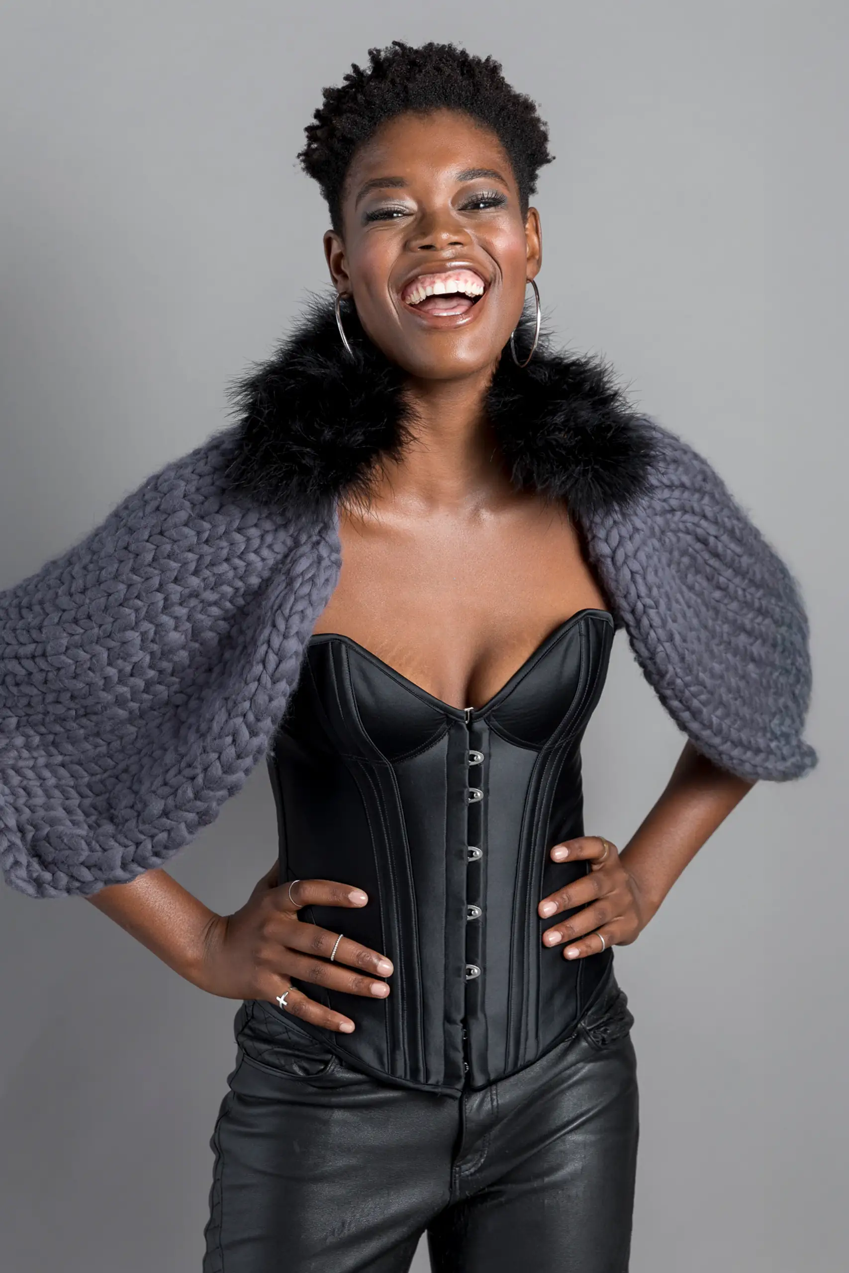 Die Accessoires sind handgearbeitet aus reiner Wolle oder Naturmischungen, teils mit Lurex oder Pailletten.
