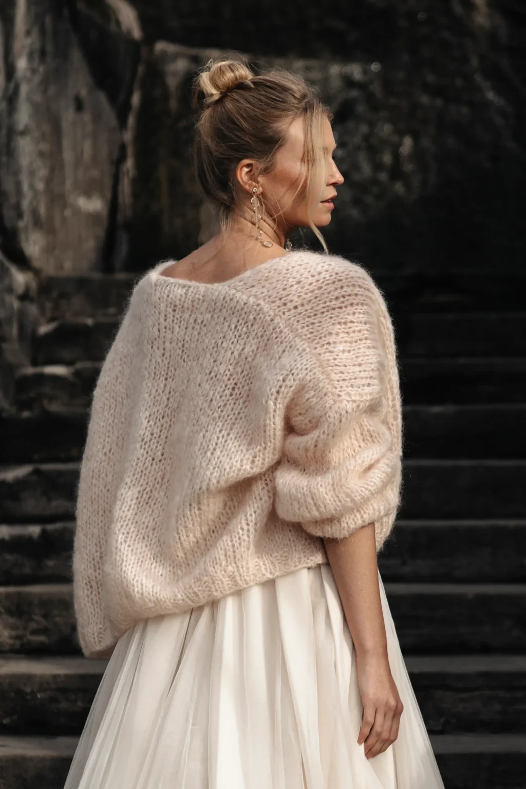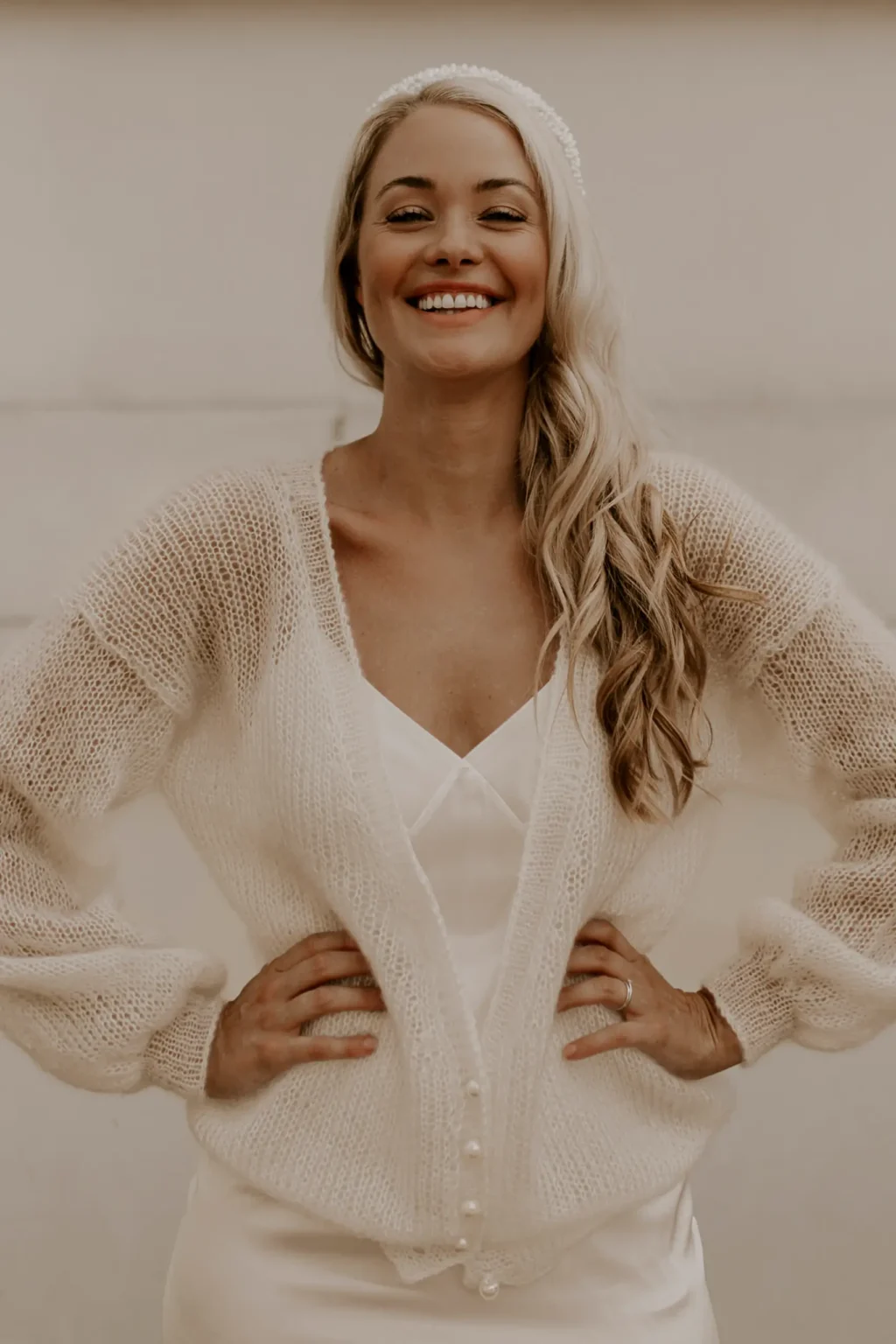 Wie wäre es mit einer kuschelig weichen Braut Strickjacke aus feinstem Handstrick? Sie lockert dein Hochzeitsoutfit auf und hält dich bei einem leichten Wind oder kühlen Temperaturen wohlig warm. Ob lässig und oversized, oder elegant und fitted - Dank vieler Designs wirst du in unserem Shop garantiert fündig. Unsere Jäckchen sind immer das perfekte Accessoire passend zu deinem Brautkleid, Brautrock oder Brauthose. Viel Spaß beim Stöbern nach der für Dich perfekten Braut Strickjacke.